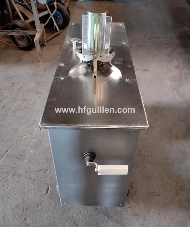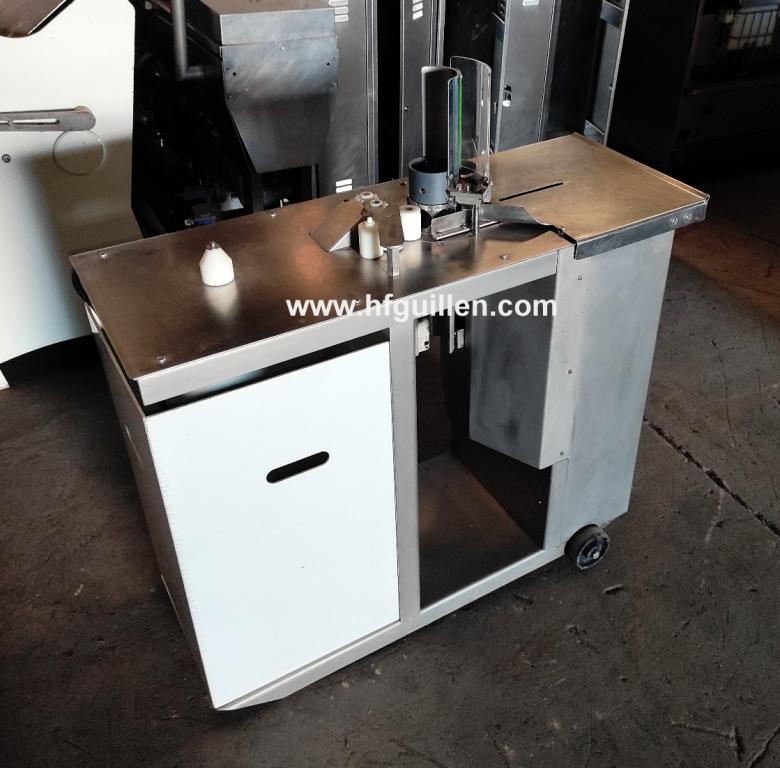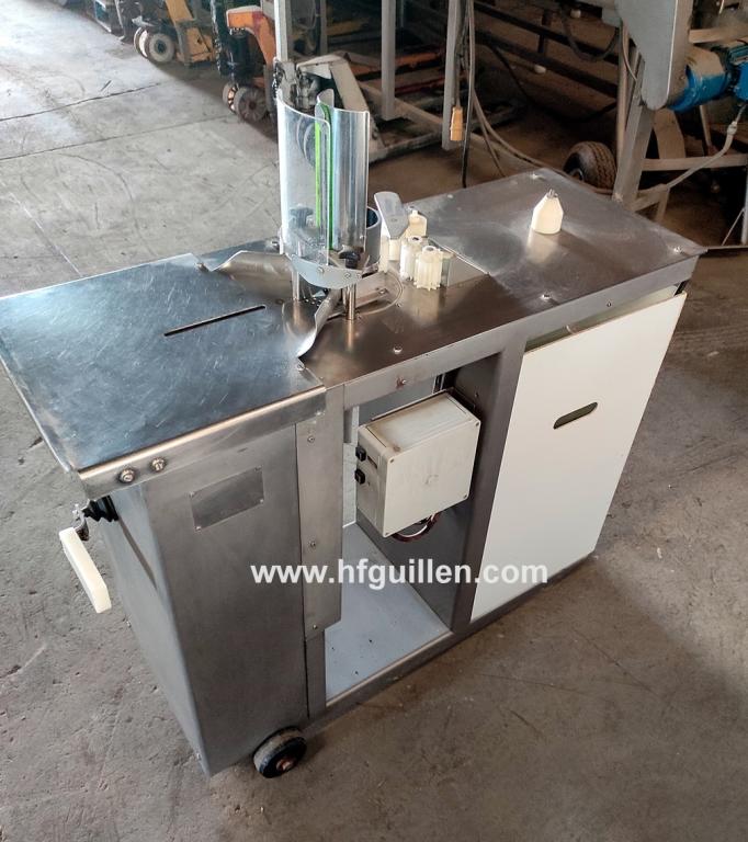 Tienda | ATADORAS DE EMBUTIDOS | (REF-2577) – ATADORA DOBLE LORENZO BARROSO DAS | Ampliar imagen | Ampliar imagen | Ampliar imagen | Ampliar imagen | ATADORA DE EMBUTIDOS | ATADORA DOBLE LORENZO BARROSO DAS | Disponibilidad: | En stock | Código: REF-2577 | REF-2577 ATADORA DOBLE LORENZO BARROSO DAS | Atadora doble de embutidos. | Fabricante: LORENZO BARROSO. | Modelo: DAS. | N.º de máquina: 81. | Efectúa simultáneamente dos atados: bien uno en ambos extremos del mismo embutido, dejándolos unidos por el mismo cordel (la clásica sarta), o bien a dos embutidos separados, que quedan también unidos por el mismo cordel. A continuación, extrae la parte sobrante del producto. | Sin clips de aluminio, sólo cordel. Se obtiene una producción industrial manteniendo la presentación artesanal. | Construcción robusta y materiales inoxidables, con tratamientos especiales y adecuados a las condiciones adversas en las que normalmente trabajan este tipo de máquinas. | Funcionamiento eléctrico, un solo motor de muy bajo consumo. Sin aire comprimido, evitando ruidos y posibles costes adicionales como instalaciones, compresor, etc. | Mecanismos de fácil acceso y limpieza. | Mínimo mantenimiento. | Dimensiones totales: ancho 500 mm, largo 1.100 mm, alto 1.120 mm. | Seguir comprando | Imprimir | Enviar | Enviar mensaje