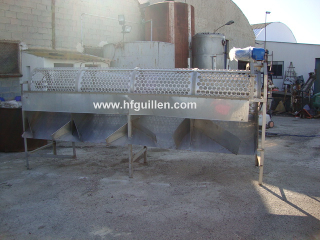 Tienda | CALIBRADORES | (REF-1072) – CALIBRADOR DE 4 METROS DE ACERO INOXIDABLE | Ampliar imagen | Ampliar imagen | Ampliar imagen | Ampliar imagen | CALIBRADOR | CALIBRADOR DE 4 METROS DE ACERO INOXIDABLE | Disponibilidad: | En stock | Código: REF-1072 | REF-1072 CALIBRADOR DE 4 METROS DE ACERO INOXIDABLE | Estructura de acero inoxidable. | Motor reductor de 1CV. | 220-380 V. Trifásico. | Capacidad: 2.000 kg/h aprox. | Engranajes mediante cadenas y piñones. | Dimensiones tambor: 750 x 4.000 mm. | 4 calibres (Ø 45 mm, 50 mm, 55 mm y 60 mm) y 1 salida para destrío. | Longitud de cada calibre: 1.000 mm. | Dimensiones totales: largo 4.250 mm, ancho 1.250 mm, alto 2.200 mm (incluyendo motor) | Peso: 550 kg. | Seguir comprando | Imprimir | Enviar | Enviar mensaje