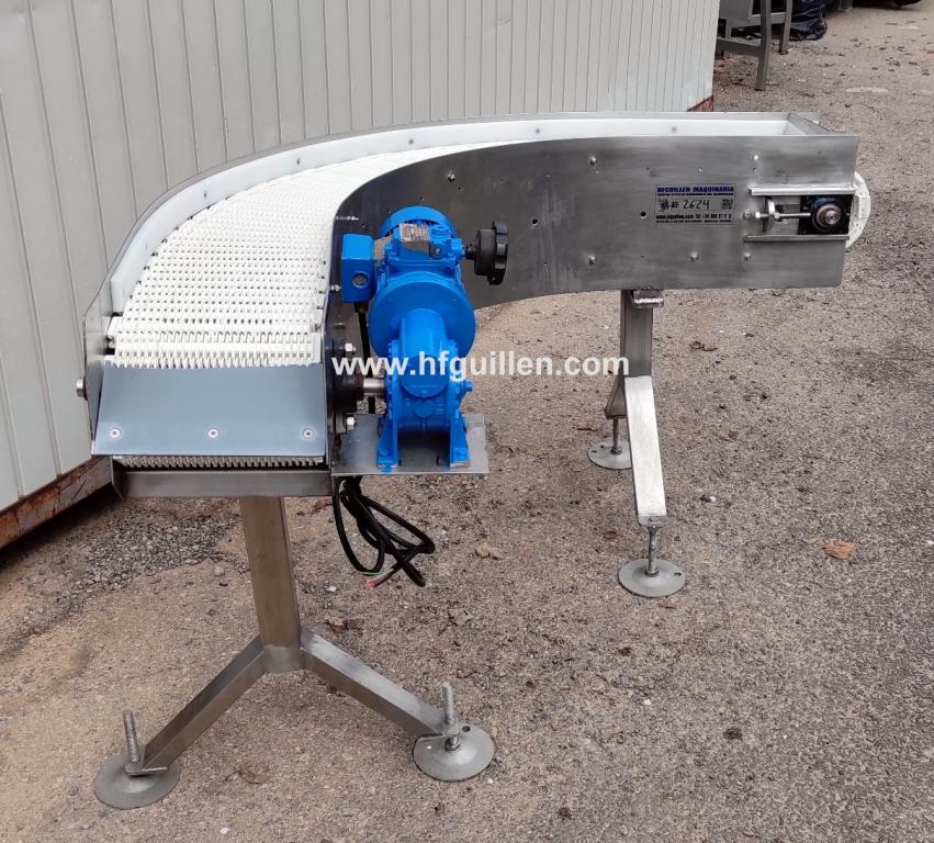 Tienda | CINTAS TRANSPORTADORAS | (REF-2624) – CINTA TRANSPORTADORA INTRALOX INOX CURVA 90° | Ampliar imagen | Ampliar imagen | Ampliar imagen | Ampliar imagen | CINTA CURVA | CINTA TRANSPORTADORA INTRALOX INOX CURVA 90° | Disponibilidad: | En stock | Código: REF-2624 | REF-2624 CINTA TRANSPORTADORA INTRALOX INOX CURVA 90° | Cinta transportadora con curva de 90º | Banda estilo intralox y estructura de acero inoxidable | Motorreductor-variador de 0,25 kW | Ancho de cinta: 240 mm | Dimensiones totales: largo 1.600 mm, ancho 1.200 mm, alto 960 mm | Seguir comprando | Imprimir | Enviar | Enviar mensaje