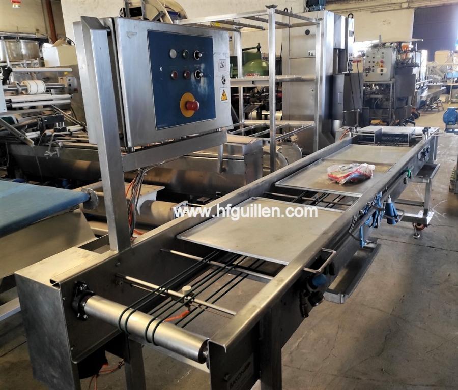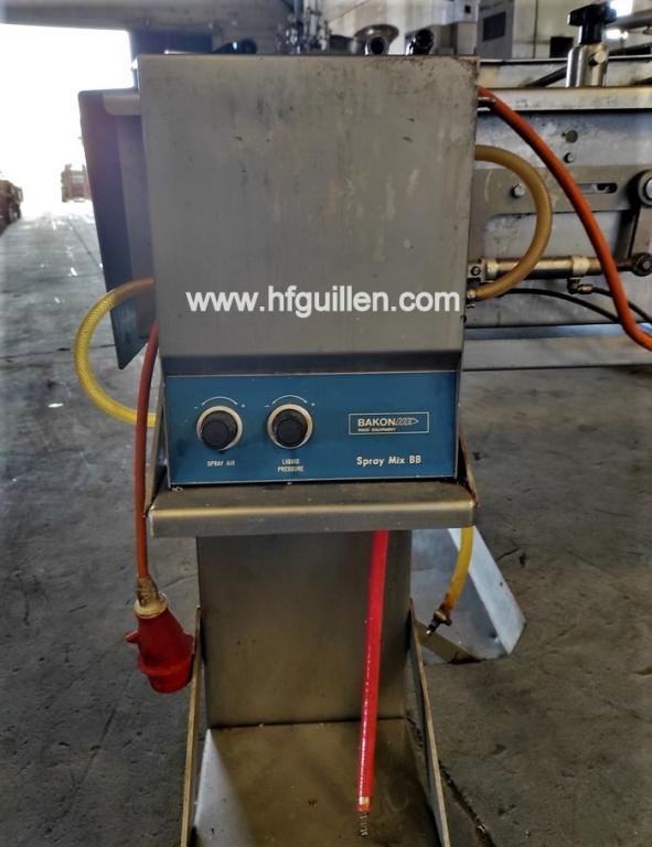 Tienda | VARIOS | (REF-2389) – CINTA DE CORDONES BAKON PARA BANDEJAS DE REPOSTERÍA CON PULVERIZADORA BAKON SPRAYMIX | Ampliar imagen | Ampliar imagen | Ampliar imagen | Ampliar imagen | CINTA DE CORDONES BAKON PARA BANDEJAS DE REPOSTERÍA CON PULVERIZADORA BAKON SPRAYMIX | Disponibilidad: | En stock | Código: REF-2389 | REF-2389 CINTA DE CORDONES BAKON PARA BANDEJAS DE REPOSTERÍA CON PULVERIZADORA BAKON SPRAYMIX | Cinta de cordones “polycord” para el transporte de bandejas de repostería y panadería. | Con máquina pulverizadora para todo tipo de líquidos. | Fabricante: BAKON FOOD EQUIPMENT | Año: 2003 | Modelo de la pulverizadora: SPRAY MIX BB | Dimensiones de la cinta: ancho útil 530 mm, largo 3.500 mm | Dimensiones totales: ancho 900 mm, largo 3.500 mm, alto 1.700 mm | Seguir comprando | Imprimir | Enviar | Enviar mensaje
