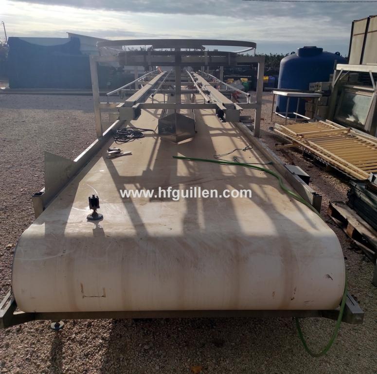 Tienda | CINTAS TRANSPORTADORAS | (REF-2585-2586) – CINTA INOX DE TRABAJO PARA HORTALIZAS CON ALIMENTADOR DE ENVASES | Ampliar imagen | Ampliar imagen | Ampliar imagen | Ampliar imagen | CINTA DE TRABAJO PARA HORTALIZAS | CINTA INOX DE TRABAJO PARA HORTALIZAS CON ALIMENTADOR DE ENVASES | Disponibilidad: | En stock | Código: REF-2585-2586 | REF-2585-2586 CINTA INOX DE TRABAJO PARA HORTALIZAS CON ALIMENTADOR DE ENVASES | 2 UNIDADES DISPONIBLES | Cinta de trabajo en acero inoxidable para brócoli, pimiento y cebolla. | Con alimentador de envases vacíos. | Dimensiones útiles cinta: ancho 150 cm, largo 1.150 cm, altura de trabajo 84 cm. | Dimensiones totales: ancho 220 cm, largo 1.270 cm, alto 175 cm. | Cinta principal con motorreductor variador de 1,5 kW. | Cinta distribuidora de envases con motovariador de 1,5 kW. | Cinta de salida con motorreductor de 1,5 kW. | Seguir comprando | Imprimir | Enviar | Enviar mensaje