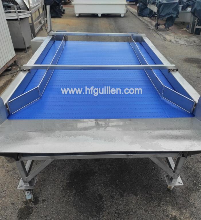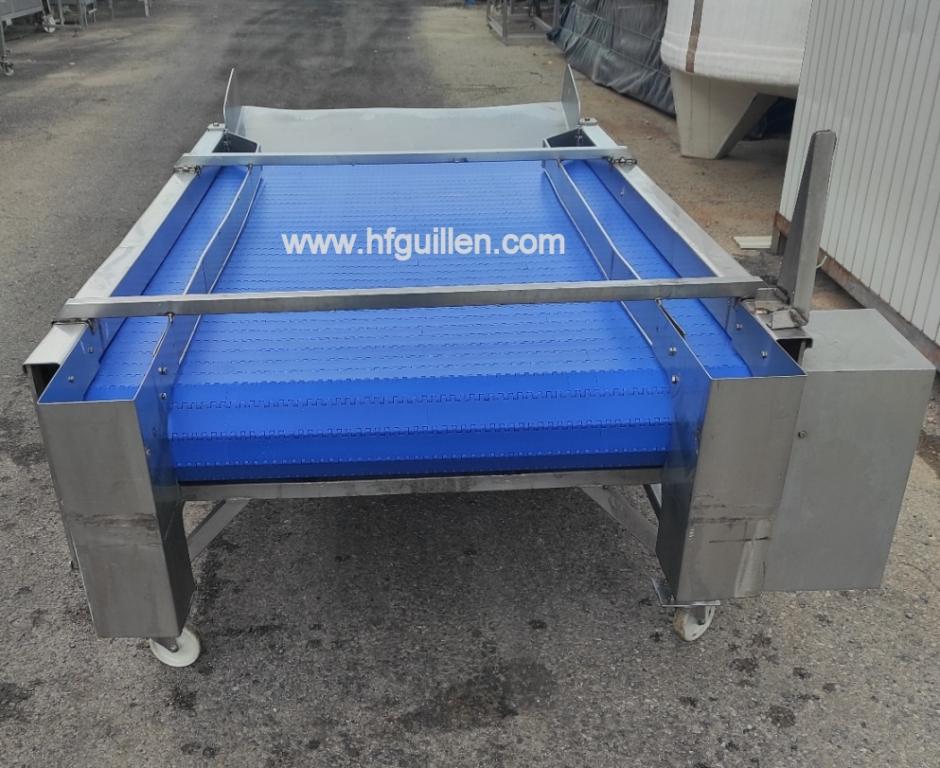 Tienda | CINTAS TRANSPORTADORAS | (REF-2437) – CINTA INTRALOX EN ACERO INOX CON RUEDAS | Ampliar imagen | Ampliar imagen | Ampliar imagen | Ampliar imagen | CINTA INTRALOX EN ACERO INOX CON RUEDAS | Disponibilidad: | En stock | Código: REF-2437 | REF-2437 CINTA INTRALOX EN ACERO INOX CON RUEDAS | Cinta transportadora estilo “intralox” en acero inoxidable montada sobre ruedas. | Potencia del motor: 0,55kW | Velocidad de salida del reductor: 40Rpm | Dimensiones de la cinta: largo 2.100mm, ancho 1.180mm | Dimensiones totales: largo 2.600mm, ancho 1.600mm, alto 1.050mm | Seguir comprando | Imprimir | Enviar | Enviar mensaje