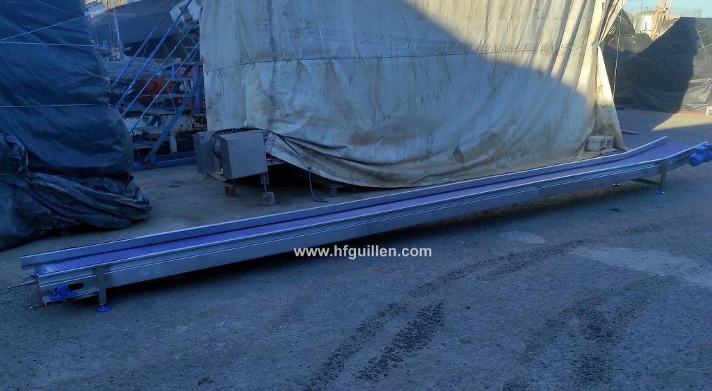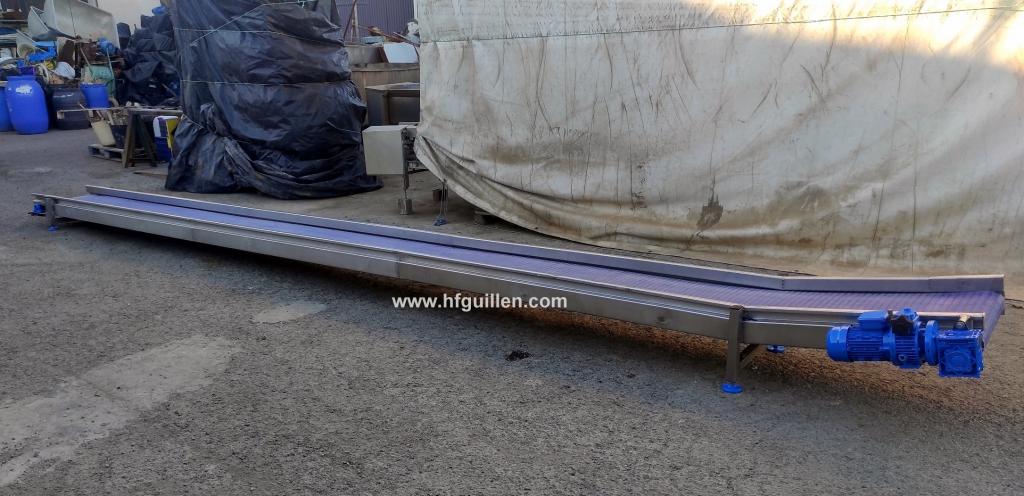 Tienda | CINTAS TRANSPORTADORAS | (REF-2590) – CINTA TRANSPORTADORA EN ACERO INOX 720x50cm | Ampliar imagen | Ampliar imagen | Ampliar imagen | Ampliar imagen | CINTA TRANSPORTADORA EN ACERO INOX 720x50cm | Disponibilidad: | En stock | Código: REF-2590 | REF-2590 CINTA TRANSPORTADORA EN ACERO INOX 720x50cm | Dimensiones totales: largo 7.200 mm, ancho 750 mm, alto 510 mm | Ancho de cinta: 500 mm | Motorreductor variador de 0,37 kW/0,5 CV | Dos opciones de compra: como está o con una cinta nueva. (Consultar precio.) | Seguir comprando | Imprimir | Enviar | Enviar mensaje