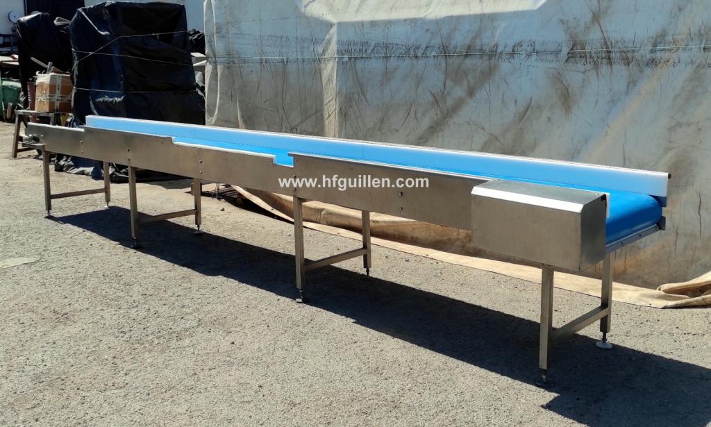 Tienda | CINTAS TRANSPORTADORAS | (REF-2667) – CINTA TRANSPORTADORA INOX CON BANDA DE PVC 6 METROS | Ampliar imagen | Ampliar imagen | Ampliar imagen | Ampliar imagen | CINTA TRANSPORTADORA INOX PVC | CINTA TRANSPORTADORA INOX CON BANDA DE PVC 6 METROS | Disponibilidad: | En stock | Código: REF-2667 | REF-2667 CINTA TRANSPORTADORA INOX CON BANDA DE PVC 6 METROS | Cinta transportadora con estructura de acero inoxidable | Banda de PVC | Motorreductor de 1,5 kW / 1.400 RPM | Dimensiones útiles cinta: largo 5.900 mm, ancho 560 mm, alto 820 mm | Dimensiones totales: largo 6.000 mm, ancho 900 mm, alto 910 mm | Seguir comprando | Imprimir | Enviar | Enviar mensaje
