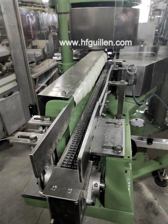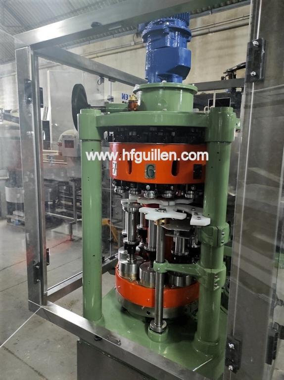 Tienda | CERRADORAS DE LATAS | (REF-0) – CERRADORA COMACO AGM 8 | Ampliar imagen | Ampliar imagen | Ampliar imagen | Ampliar imagen | COMACO AGM 8 | CERRADORA COMACO AGM 8 | Disponibilidad: | En stock | Código: REF-0 | REF-0 CERRADORA COMACO AGM 8 | Máquina reconstruida por encargo. | Se entregará ajustada al formato de bote que necesite el cliente (hasta 99 mm). | Cabeza central con ocho cabezas de cierre a bote rodante. | Entrada de botes lineal por sinfín. | Alimentación de tapas automática. | Detector de alimentación de bote y tapa. | Detector de acumulación de tapas. | Bancada en acero inoxidable nueva. | Instalación eléctrica nueva, con cuadro eléctrico y variador de velocidad electrónico. | Producción: 300-400 latas/min (según formato y producto). | Seguir comprando | Imprimir | Enviar | Enviar mensaje