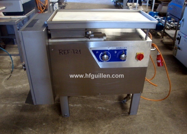 Tienda | CORTADORAS Y CUBICADORAS | (REF-721) – CORTADORA EN DADOS FOODLOGISTIK | Ampliar imagen | Ampliar imagen | Ampliar imagen | Ampliar imagen | CORTADORA EN DADOS FOODLOGISTIK | Disponibilidad: | En stock | Código: REF-721 | REF-721 CORTADORA EN DADOS FOODLOGISTIK | Marca: FOODLOGISTIK | Modelo: MS84.2 | Año: 1993 | Tensión: 380 V/50 Hz/Trifásica | Motor de 2,5 kW | Formato de corte actual: 16x16x16 mm | Producción: máx. 850 kg/h (con máx. velocidad y llenado óptimo del cajón de carga) | Dimensiones abertura del cajón de carne: largo 300 mm; ancho 90 mm; alto 85 mm | Dimensiones totales: largo 1.200 mm; ancho 630 mm; alto 1.070 mm | Seguir comprando | Imprimir | Enviar | Enviar mensaje