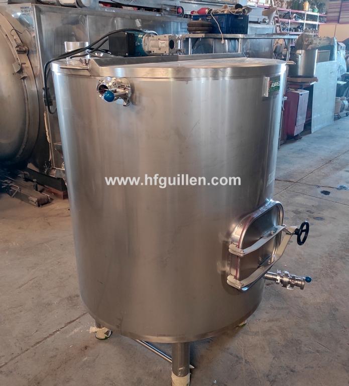 Tienda | DEPÓSITOS, TANQUES | (REF-2538) – DEPÓSITO INOX ISOTERMO CON AGITADOR Y TAPADERA 550 LITROS | Ampliar imagen | Ampliar imagen | Ampliar imagen | Ampliar imagen | DEPÓSITO INOX ISOTERMO AGITADOR | DEPÓSITO INOX ISOTERMO CON AGITADOR Y TAPADERA 550 LITROS | Disponibilidad: | En stock | Código: REF-2538 | REF-2538 DEPÓSITO INOX ISOTERMO CON AGITADOR Y TAPADERA 550 LITROS | Depósito isotermo en acero inoxidable con agitador y tapadera. | Con sistema de lavado. | Apto para calentamiento con gas desde abajo (no incluido). Dispone de salida de gases en la parte superior. | Capacidad: aprox. 550 litros. | Motor del agitador: 0,18 kW/monofásico. | Dimensiones útiles del depósito: diámetro 850 mm, altura 1.020 mm. | Dimensiones totales: largo 1.500 mm, ancho 1.100 mm, alto 1.600 mm. | Seguir comprando | Imprimir | Enviar | Enviar mensaje