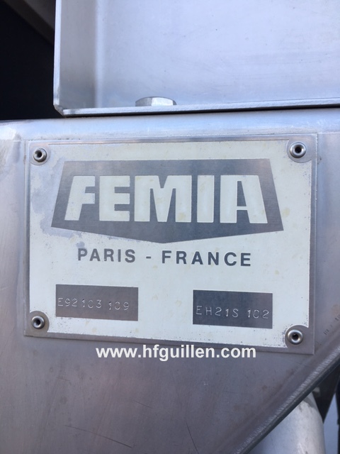 Tienda | VIBRADORES | (REF-620) – DESPEDRADOR-VIBRADOR HIDRÁULICO FEMIA EH21 | Ampliar imagen | Ampliar imagen | Ampliar imagen | Ampliar imagen | DESPEDRADOR-VIBRADOR HIDRÁULICO FEMIA EH21 | Disponibilidad: | En stock | Código: REF-620 | REF-620 DESPEDRADOR-VIBRADOR HIDRÁULICO FEMIA EH21 | spedrador hidráulico para diversos productos (guisantes, habichuelas, habas, judías blancas o alubias, lentejas, etc.) que permite la separación de los productos y de los desechos pesados (piedras, terrones de tierra, etc.) en un flujo de agua ascendente creado por un grupo moto-bomba. | Los tambores motorizados aseguran la eliminación de los desechos ligeros. El agua es reciclada en el aparato. Los desechos pesados son evacuados por medio de un tamiz. | Consta de: | – Vibrador en acero inox. | – Balsa quita-sólidos | – Motobomba de 2,2 kW | – Dimensiones totales: largo 2.100 mm, ancho 1.350 mm, alto 24.00 mm | Descargar mas información | (118 KB) | Seguir comprando | Imprimir | Enviar