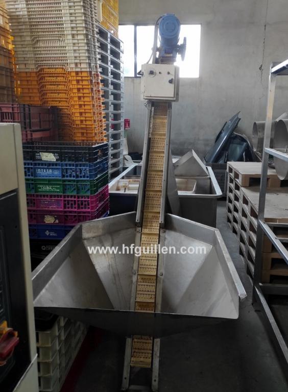 Tienda | ELEVADORES | (REF-0) – ELEVADOR DE PALAS EN ACERO INOX CON TOLVA | Ampliar imagen | Ampliar imagen | Ampliar imagen | ELEVADOR DE PALAS EN ACERO INOX CON TOLVA | Disponibilidad: | En stock | Código: REF-0 | REF-0 ELEVADOR DE PALAS EN ACERO INOX CON TOLVA | Dimensiones totales: largo 2.200 mm, ancho 870 mm, alto 2.400 mm. | Altura de descarga: 2.100 mm. | Dimensiones tolva: largo 1.000 mm, ancho 810 mm, alto 700 mm. | Dimensiones cinta: ancho 120 mm, altura palas 45 mm, distancia entre palas 160 mm. | Potencia: 0,5 CV. | Seguir comprando | Imprimir | Enviar | Enviar mensaje