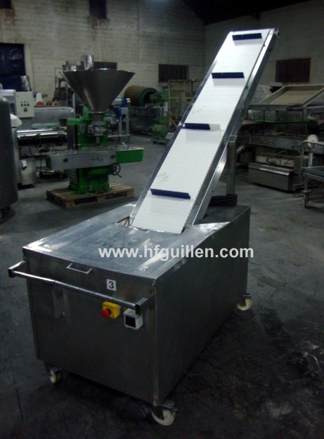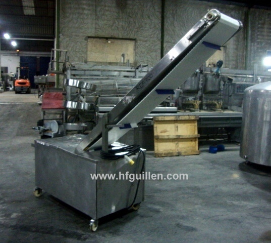 Tienda | ELEVADORES | (REF-700) – ELEVADOR EN ACERO INOX CON RUEDAS | Ampliar imagen | Ampliar imagen | Ampliar imagen | Ampliar imagen | ELEVADOR EN ACERO INOX CON RUEDAS | Disponibilidad: | En stock | Código: REF-700 | REF-700 ELEVADOR EN ACERO INOX CON RUEDAS | Elevador de banda modular. | Dispone de ruedas para un fácil desplazamiento. | Monofásico, 220 V. | Dimensiones de la cinta transportadora: largo 2.500 mm, ancho 450 mm. | Ancho útil de la banda: 350 mm. | Dimensiones paletas: ancho 280 mm, alto 50 mm, separación entre dos palas 650 mm. | Altura de la descarga: 2.220 mm. | Dimensiones totales: largo 2.800 mm, ancho 800 mm, alto 2.500 mm. | Seguir comprando | Imprimir | Enviar | Enviar mensaje