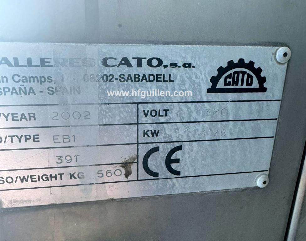 Tienda | EMBUTIDORAS Y EMBUCHADORAS DE CARNE | (REF-2283) – EMBUTIDORA EN CONTINUO AL VACÍO CATO | Ampliar imagen | Ampliar imagen | Ampliar imagen | Ampliar imagen | EMBUTIDORA CATO EB1 | EMBUTIDORA EN CONTINUO AL VACÍO CATO | Disponibilidad: | En stock | Código: REF-2283 | REF-2283 EMBUTIDORA EN CONTINUO AL VACÍO CATO | Embutidora de paletas en continuo con vacío | Marca: CATO | Tipo: EB1 | Año: 2002 | Potencia: 4,75 kW / 6,5 CV | Volumen tolva: 250 litros | Producción: hasta 3.500 kg/h | Peso: 560 kg | Dimensiones totales: 950 mm ancho, 800 mm largo, 1.900 mm alto | Seguir comprando | Imprimir | Enviar | Enviar mensaje