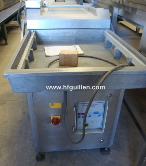 Tienda | ENVASADORAS DE VACIO, CAMPANAS DE VACIO | (REF-1496) – ENVASADORA AL VACÍO DOBLE CAMPANA WEBOMATIC | Ampliar imagen | Ampliar imagen | Ampliar imagen | ENVASADORA AL VACÍO DOBLE CAMPANA WEBOMATIC | Disponibilidad: | En stock | Código: REF-1496 | REF-1496 ENVASADORA AL VACÍO DOBLE CAMPANA WEBOMATIC | Campana de vacío doble. | Marca: Webomatic. | Modelo: PNC 20-PR | Nº máquina: 5310CH2267 | 4kW. 50 Hz. 400V. 9 A | Bomba de vacío 160m3/h | Dimensiones campanas: 850mm largo, 720mm ancho. Barras de soldadura 850mm largo, distancia entre las dos barras 650mm. | Dimensiones totales: 1.950mm largo, 900mm ancho, 1.200mm alto. | Seguir comprando | Imprimir | Enviar | Enviar mensaje