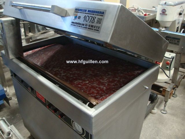Tienda | ENVASADORAS DE VACIO, CAMPANAS DE VACIO | (REF-1078) – ENVASADORA AL VACÍO | Ampliar imagen | Ampliar imagen | Ampliar imagen | Ampliar imagen | ENVASADORA AL VACÍO | Disponibilidad: | En stock | Código: REF-1078 | REF-1078 ENVASADORA AL VACÍO | Campana de vacío completamente en acero inoxidable. | Marca INELVI. | Tipo: VI950. | Apertura neumática. | Dimensiones campana: altura 220mm, largo 500mm, ancho 900mm. | Barra de soldadura que permite soldar piezas de hasta 85 cm. | Potencia del motor 4 kW. | Bomba de vacío marca BUSCH, tipo 160-152. | Medidas bomba de vacío: alto 1.100mm, ancho 850mm, largo 550mm. | Dimensiones totales: alto: 1.200mm, ancho 1.000mm, largo 750mm | Seguir comprando | Imprimir | Enviar | Enviar mensaje