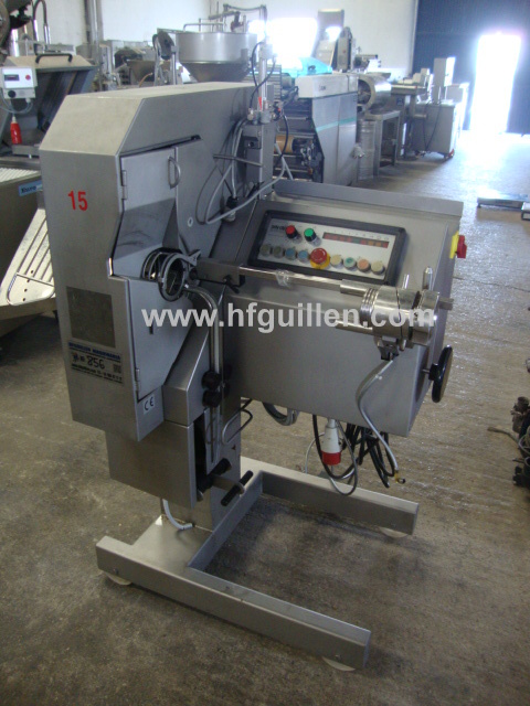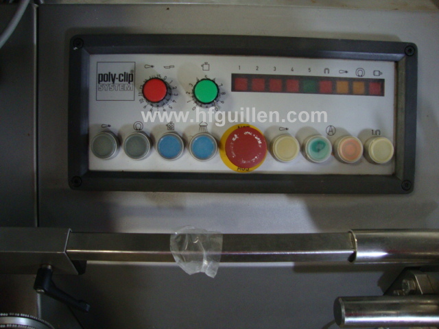 Tienda | GRAPADORAS CLIPADORAS | (856) – GRAPADORA AUTOMÁTICA DE DOBLE GRAPA POLY-CLIP DCE 6410 | Ampliar imagen | Ampliar imagen | Ampliar imagen | Ampliar imagen | GRAPADORA AUTOMÁTICA DE DOBLE GRAPA POLY-CLIP DCE 6410 | Disponibilidad: | En stock | Código: 856 | SE ADAPTA A LA PRODUCCIÓN DE TODO TIPO DE EMBUTIDOS, INDIVIDUALES O EN RISTRA, EN FORMA DE SARTA O IMPERIAL, EMPLEANDO TRIPAS NATURALES O ARTIFICIALES. | INCORPORA TIJERAS SEPARADORAS. | PARA GRAPAS TIPO S EN ROLLO. | MARCA: POLY-CLIP SYSTEM | TIPO: DCE 6410 | Nº DE MÁQUINA: 174/97 | PARA CONECTAR A UNA EMBUTIDORA. | EN ACERO INOX. | PRODUCCIÓN: HASTA 100 CICLOS/MIN. | PARA CALIBRES ENTRE 20 Y 65 mm. | CON RUEDAS PARA FÁCIL DESPLAZAMIENTO. | 400V, 6A, 6 BARES | DIMENSIONES: LARGO-1.200 mm, ANCHO-800 mm, ALTO-1.430 mm | HOMOLOGACIÓN CE | AÑO DE FABRICACIÓN: 1997 | PESO: 170 Kg | Seguir comprando | Imprimir | Enviar | Enviar mensaje