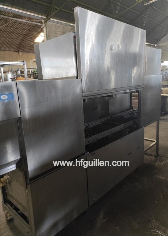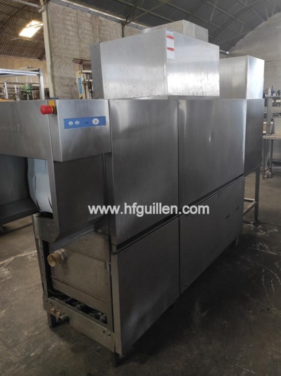 Tienda | LAVADORAS Y EQUIPOS DE LAVADO | (REF-2368) – LAVAVAJILLAS DE TÚNEL POR ARRASTRE DE CESTAS HOBART CNA-L | Ampliar imagen | Ampliar imagen | Ampliar imagen | Ampliar imagen | HOBART CNA-L | LAVAVAJILLAS DE TÚNEL POR ARRASTRE DE CESTAS HOBART CNA-L | Disponibilidad: | En stock | Código: REF-2368 | REF-2368 LAVAVAJILLAS DE TÚNEL POR ARRASTRE DE CESTAS HOBART CNA-L | Lavavajillas y lavadora de utensilios con túnel de arrastre de cestas. | Fabricante: HOBART. | Modelo: CNA-L. | N.º de serie: 86463655. | Año: 2007. | 26,30 kW/50,30 A. | 380-415 V/50 Hz/Trifásica. | Capacidad: 180 cestas/3.240 platos por hora (120 cestas según norma DIN 10510). | Con bomba de calor HOBART. | Modelo de bomba: CHP 18. | N.º de serie: 692. | Año: 2007. | Tipo de refrigerante: R134a (capacidad 3,2 kg). | Presión máxima: lado de alta 28 bar; lado de baja 8 bar. | Compresor: caudal máx. 17 m3/h; 2.900 RPM. | Dimensiones interiores: ancho 510 mm, alto 460 mm. | Dimensiones totales: largo 3.200 mm, ancho 800 mm, alto 2.150 mm. | Con zona de prelavado de alto rendimiento, además de zonas de lavado, enjuagado y secado. | Construido en acero inoxidable de alta calidad. | Control electrónico SMARTRONIC. | Con 2 velocidades, botón de paro de emergencia e interruptor principal. | Sistema de aclarado dual eficiente. | Sistema integrado “autotimer” de apagado automático cuando no se detectan cestas. | Vaciado de la máquina pulsando un botón. | Filtrado constante del agua en las zonas de prelavado y lavado mediante filtros inclinados. | Acceso total a la cámara de lavado. | Marcado CE. | Conforme con la norma DIN 10510. | Seguir comprando | Imprimir | Enviar | Enviar mensaje