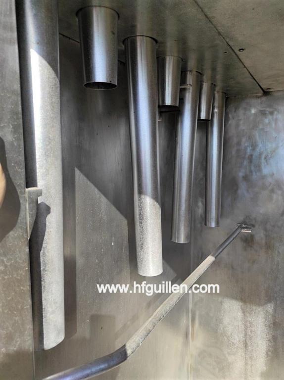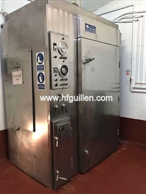 Tienda | HORNOS | (REF-2280) – HORNO DE AHUMADO JOSÉ LIZONDO | Ampliar imagen | Ampliar imagen | Ampliar imagen | Ampliar imagen | HORNO DE AHUMADO | HORNO DE AHUMADO JOSÉ LIZONDO | Disponibilidad: | En stock | Código: REF-2280 | REF-2280 HORNO DE AHUMADO JOSÉ LIZONDO | Fabricante: JOSÉ LIZONDO | Modelo: H2000 | N.º de serie: 721 | Horno o cabina de ahumado. | Diseñado para el ahumado en frío o en caliente de cualquier producto alimentario que lo requiera, tanto carne como pescado o quesos. | Funcionamiento eléctrico. | Fabricado en acero inoxidable. | Tensión: 380 V | Potencia resistencias: 28 kW | Potencia motor: 5,5 CV | Rango de temperatura: 20 °C – 100 °C. | Cabina con capacidad para un carro bandejero (incluido) | Dimensiones del carro: ancho 1.000 mm, largo 1.000 mm, alto 2.000 mm | Dimensiones totales: ancho 2.200 mm, largo 1.400 mm, alto 2.600 mm | Seguir comprando | Imprimir | Enviar | Enviar mensaje