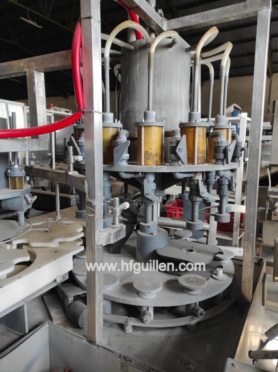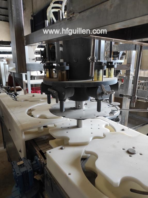 LLENADORA DE 12 VÁLVULAS PARA PRODUCTOS CORROSIVOS (LEJÍA) CON DOSIFICADOR DE DETERGENTE Y TAPONADORA