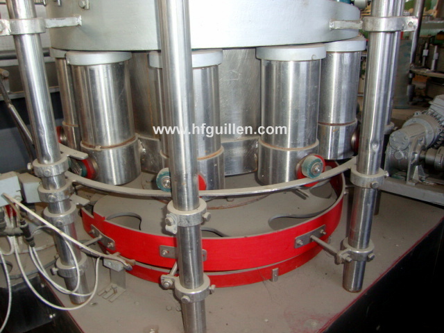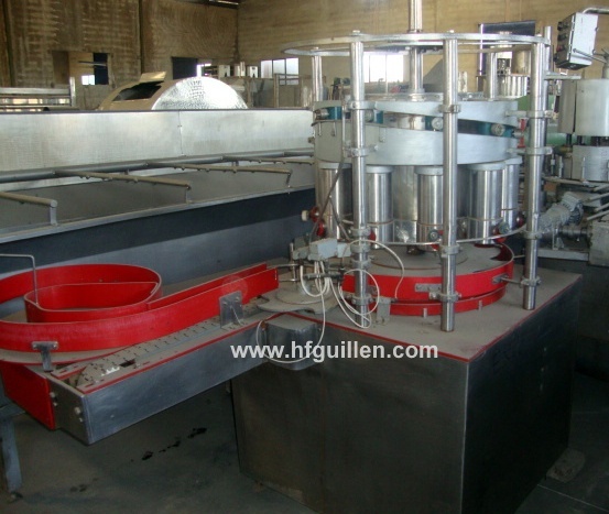 Tienda | LLENADORAS DE LÍQUIDOS, SÓLIDOS, POLVOS, ETC | (REF-427) – LLENADORA DE LIQUIDOS ROTATIVA | Ampliar imagen | Ampliar imagen | Ampliar imagen | Ampliar imagen | LLENADORA DE LIQUIDOS ROTATIVA | Disponibilidad: | En stock | Código: REF-427 | REF-427 LLENADORA DE LIQUIDOS ROTATIVA | 10 cilindros de llenado | Entrada por mesa giratoria de acumulación de envases (diámetro 600 mm) | Salida mediante transporte charnela de acero inoxidable | Dimensiones totales: largo 2.600 mm, ancho 1.500 mm, alto 2.000 mm | Seguir comprando | Imprimir | Enviar | Enviar mensaje