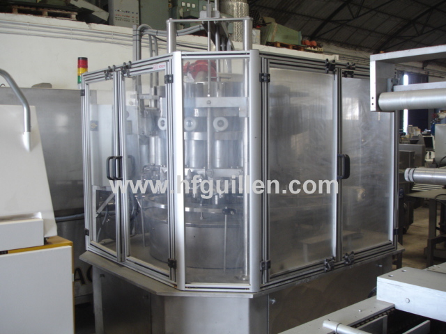 Tienda | LLENADORAS DE LÍQUIDOS, SÓLIDOS, POLVOS, ETC | (104) – LLENADORA DOSIFICADORA 18 PISTONES | Ampliar imagen | Ampliar imagen | Ampliar imagen | Ampliar imagen | LLENADORA DOSIFICADORA 18 PISTONES | Disponibilidad: | En stock | Código: 104 | Marca: CHACONSA | Máquina completa en acero inox. | Entrada lineal por transporte charnela con sinfín | Capacidad max. Pistón: 750 cc. | Producción aprox. 5.000 kg/h. | Ideal para llenar productos pastosos, como salsas, yogures, etc. en envases de vidrio, hojalata, PET, PVC, etc. | Seguir comprando | Imprimir | Enviar | Enviar mensaje