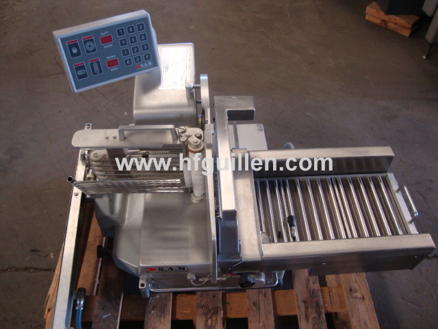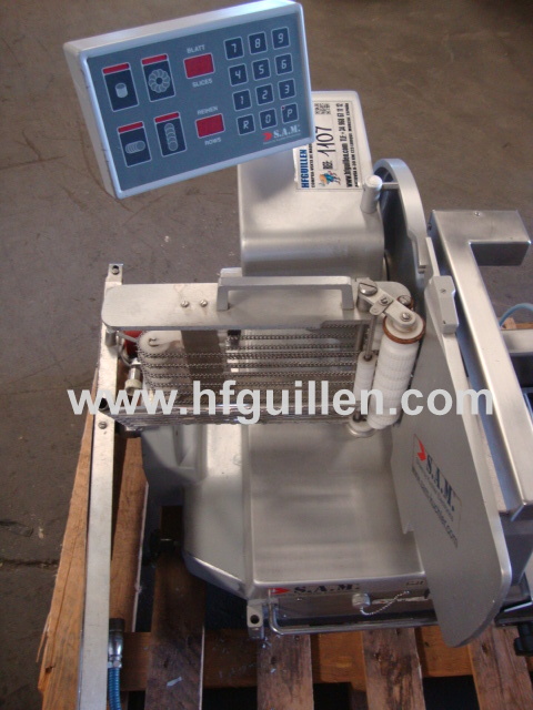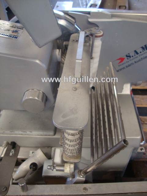 Tienda | CORTADORAS Y CUBICADORAS | (REF-1107) – LONCHEADORA AUTOMÁTICA S.A.M. CON INTERLEAVER Y CINTA DE SALIDA | Ampliar imagen | Ampliar imagen | Ampliar imagen | Ampliar imagen | LONCHEADORA AUTOMÁTICA CON INTERLEAVER | LONCHEADORA AUTOMÁTICA S.A.M. CON INTERLEAVER Y CINTA DE SALIDA | Disponibilidad: | En stock | Código: REF-1107 | REF-1107 LONCHEADORA AUTOMÁTICA S.A.M. CON INTERLEAVER Y CINTA DE SALIDA | Loncheadora automática con cinta de salida. | Incluye accesorio interleaver (intercalador de láminas separadoras entre lonchas). | Marca: S.A.M. Kuchler | Modelo: IL-4-220 | N.º de serie: 100525 | Año: 2004 | Marcado CE | Tensión: 230 V/50 Hz/0,43 A | Presión: 6-7 bar | Regulación de corte manual | Salida de producto en banda | 4 formas de salida de producto: | – En columna | – En redondo | – Horizontal escalonado | – Vertical escalonado | Dimensiones loncheadora (sin la cinta de salida): largo 950 mm, ancho 700 mm, alto 700 mm | Dimensiones interleaver: largo 750 mm, ancho 400 mm, alto 380 mm | Seguir comprando | Imprimir | Enviar | Enviar mensaje