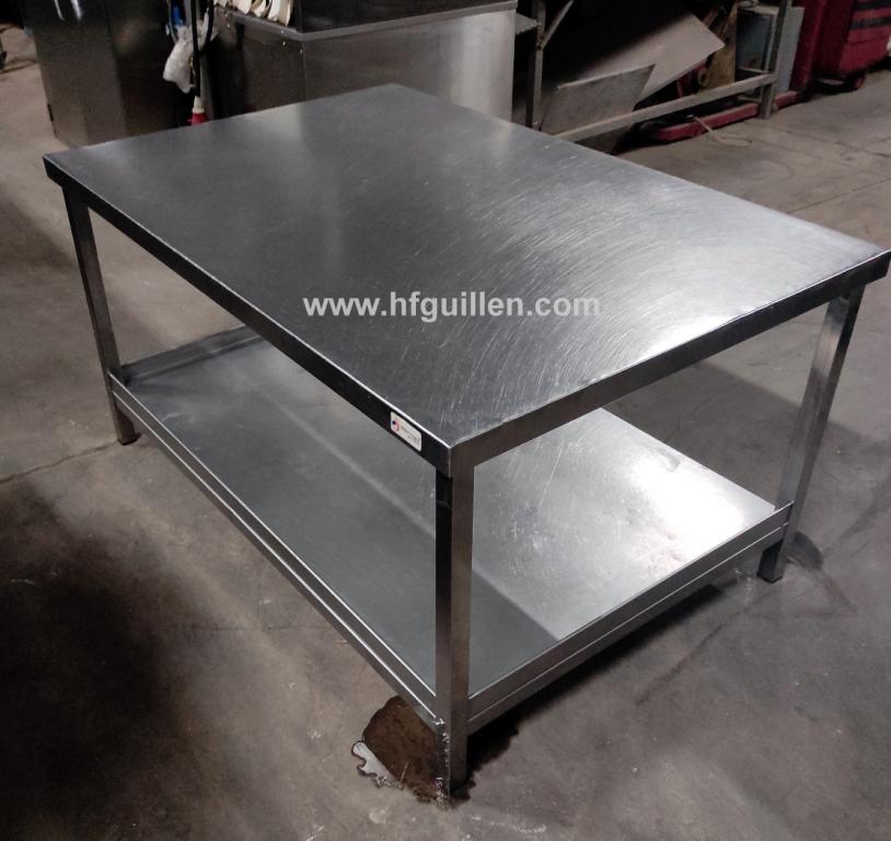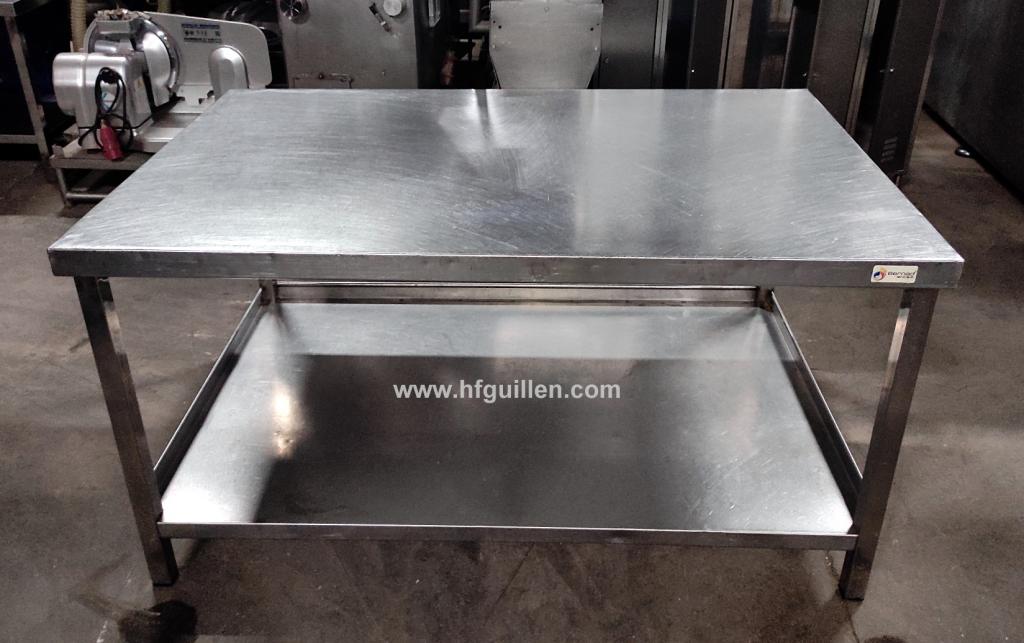 MESA EN ACERO INOX CON BALDA 150×100 cm