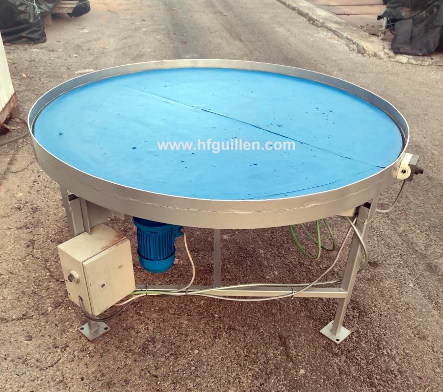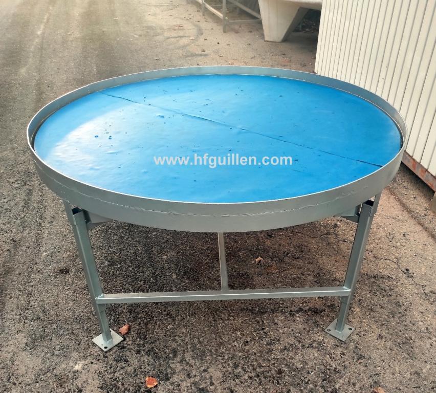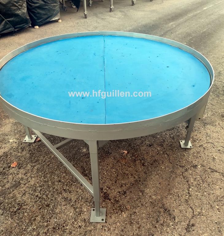 Tienda | MESAS DE ACUMULACIÓN Y DISCOS GIRATORIOS | (REF-2588) – MESA GIRATORIA DE 154 cm | Ampliar imagen | Ampliar imagen | Ampliar imagen | Ampliar imagen | MESA GIRATORIA DE 154 cm | Disponibilidad: | En stock | Código: REF-2588 | REF-2588 MESA GIRATORIA DE 154 cm | Mesa giratoria de acumulación. | Dimensiones totales: Ø 154 cm, alto 82 cm (patas regulables en altura). | Motor: 0,37 kW / 0,5 CV. | Con variador de velocidad. | Seguir comprando | Imprimir | Enviar | Enviar mensaje