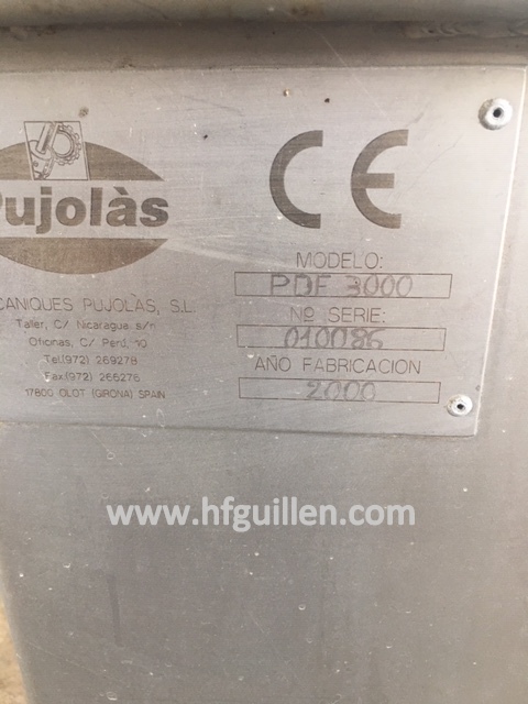 Tienda | PRENSAS | (REF-118) – PRENSA DE JAMÓN FRESCO PUJOLÀS | Ampliar imagen | Ampliar imagen | Ampliar imagen | Ampliar imagen | PRENSA DE JAMÓN FRESCO PUJOLÀS | Disponibilidad: | En stock | Código: REF-118 | REF-118 PRENSA DE JAMÓN FRESCO PUJOLÀS | Marca: PUJOLÀS | Modelo: PDF 3000 | Nº serie: 010086 | Año: 2000 | Prensa formadora de jamones y paletas frescos post-salados, tipo serrano e ibérico. | Sistema de embolar y limonar. | Máquina neumática semiautomática. | Molde de polietileno. | Hasta 250 jamones/hora. | En acero inox. 304. | Regulador de presión. | Dimensiones: 1.305 x 700 x 1.190 mm (LxAxH). | Peso: 200 kg | Seguir comprando | Imprimir | Enviar | Enviar mensaje