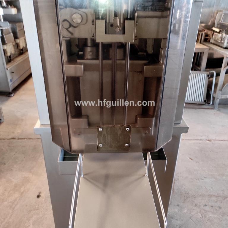 Tienda | PRENSAS | (REF-0) – PRENSA PUJOLÀS PF 4000 PARA JAMÓN DESHUESADO Y BEICON | Ampliar imagen | Ampliar imagen | Ampliar imagen | Ampliar imagen | PRENSA PUJOLÀS JAMON | PRENSA PUJOLÀS PF 4000 PARA JAMÓN DESHUESADO Y BEICON | Disponibilidad: | En stock | Código: REF-0 | REF-0 PRENSA PUJOLÀS PF 4000 PARA JAMÓN DESHUESADO Y BEICON | Prensa formadora 2D de jamones y paletas deshuesados y de beicon para lonchearlos sin merma. | Fabricante: PUJOLÀS | Modelo: PF 4000 | N.º de serie: 0107121 | Año: 2007 | Presión hidráulica: 150 bar | Presión de aire: 6 kg | Máquina y molde en acero inoxidable AISI 304 | Dimensiones molde: largo 500 mm, ancho 185 mm, alto 270 mm | Dimensiones totales: largo 2.400 mm, ancho 650 mm, alto 2.320 mm | Esta máquina ofrece una gran presentación una vez prensado el jamón ya que todas las partes adoptan el mismo grosor. | Las partes abiertas al haber sacado los huesos quedan totalmente cerradas y unidas, lo cual permite el total aprovechamiento del producto. | Las lonchas quedan uniformes, con una gran calidad desde la primera hasta la última. | Este sistema de prensado supone una solución a la perdida de aire de las bolsas de vacío ya que el jamón queda totalmente plano. | Seguir comprando | Imprimir | Enviar | Enviar mensaje
