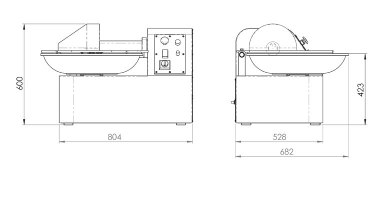 REF-0 CUTTER DE 20 LITROS CON VARIADOR DE VELOCIDAD (NUEVO) | – Modelo de sobremesa. | – Capacidad: 20 litros (aprox. 14 kg). | – Construida totalmente en acero inoxidable AISI 304. | – Artesa de fundición de acero inoxidable AISI 304. | – Construcción muy robusta para evitar vibraciones. | – Equipada con freno de seguridad en las cuchillas. | – Equipada con 1 motor con variador de velocidad. | – Equipada con 3 cuchillas (opcional 6 cuchillas). | – Potencia motora: 3 CV/2,2 kW. | – Velocidad variable de las cuchillas: de 1.000 a 3.000 rpm. | – Velocidad variable de la artesa: de 12 a 24 rpm. | – Peso neto: 225 kg. | Opcional: | • Cabezal extra de 3 cuchillas. | • Cabezal extra de 6 cuchillas. | • Equipada con 6 cuchillas en lugar de 3. | • Termómetro. | Dimensiones: vid. última imagen (en milímetros) | REF-0 CUTTER DE 20 LITROS CON VARIADOR DE VELOCIDAD (NUEVO) | Volver al listado | Imprimir | Enviar