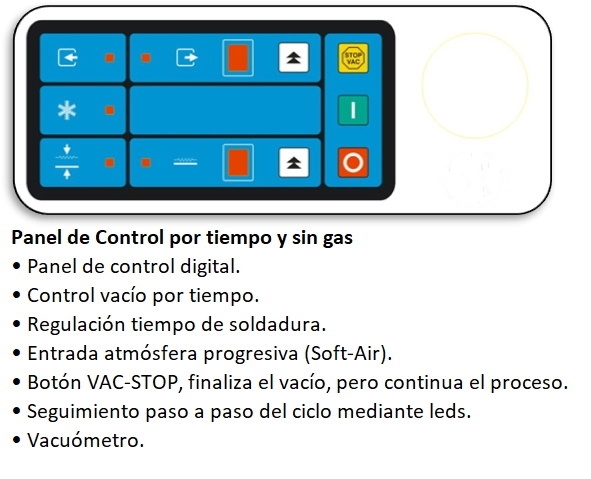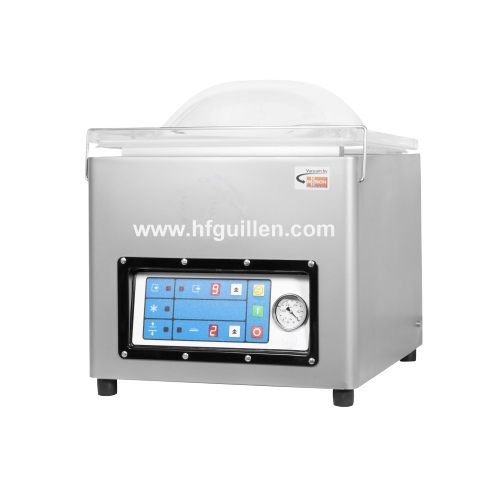 REF-0 ENVASADORA AL VACÍO DE SOBREMESA 360mm (NUEVA) | • Construida totalmente en acero inoxidable AISI 304. | • Tapa transparente. | • Entrada de aire en atmósfera progresiva ( | Soft Air | ). | • Fácil desmontaje de la barra de soldadura. | • Equipada con gruesos de polietileno para un envasado más rápido y fácil colocación de bolsas. | • Fácil mantenimiento. | • Bomba BUSCH de 10 m³/h. | • Voltaje: 230V/monofásica/50Hz. | • Potencia: 0,5CV/0,37kW. | • Con soldadura simple (vid. última imagen). | • Panel de control digital. | • Dimensiones totales: ancho 440mm, largo 530mm, alto 470mm | • Peso neto/bruto (kg): 47/55 | • Dimensiones de la cámara: 370×400×150mm. | • Longitud de la barra de soldadura: 360mm. | REF-0 ENVASADORA AL VACÍO DE SOBREMESA 360mm (NUEVA) | Volver al listado | Imprimir | Enviar