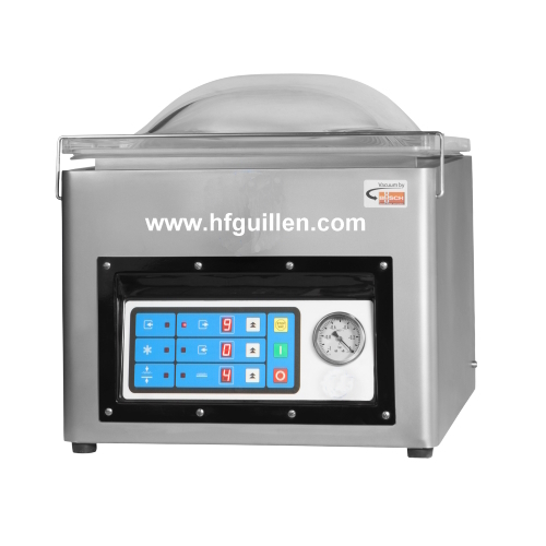 REF-0 ENVASADORA AL VACÍO DE SOBREMESA 420mm 20m3/h (NUEVA) | • Construida totalmente en acero inoxidable AISI 304. | • Tapa transparente. | • Entrada de aire en atmósfera progresiva (Soft Air). | • Fácil desmontaje de la barra de soldadura. | • Equipada con gruesos de polietileno para un envasado más rápido y fácil colocación de bolsas. | • Fácil mantenimiento. | • Bomba BUSCH de 20 m³/h. | • Voltaje: 230V/monofásica/50Hz. | • Potencia: 1,02CV/0,75kW. | • Soldadura neumática (sin cables). | • Soldadura doble. (Opcional: soldadura simple con corte del sobrante) | • Panel de control digital. (Opcional: panel de control digital por sensor.) | • Dimensiones totales: ancho 490mm, largo 580mm, alto 470mm. | • Peso neto/bruto (kg): 69/83. | • Dimensiones de la cámara: 430×450×180mm. | • Longitud de la barra de soldadura: 420mm. | • Opcional: Entrada de gas inerte. | • Accesorios: | – Placa inclinada para envasar productos líquidos o salsas | – Conector para vacío en cubetas externas | REF-0 ENVASADORA AL VACÍO DE SOBREMESA 420mm 20m3/h (NUEVA) | Volver al listado | Imprimir | Enviar