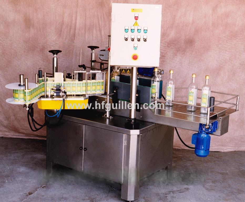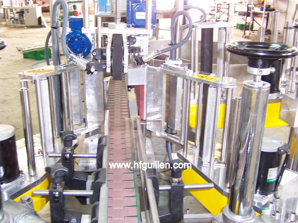 REF-0 ETIQUETADORA CON DOBLE CABEZAL AUTOADHESIVO | Doble cabezal de etiquetado para etiqueta y contra-etiqueta | Con mesa de acumulación para envases en acero inox. | Cuadro eléctrico | Estructura en acero inox. | Enfardado lateral motorizado para etiqueta en redondo | Columna para regulación de altura | Transporte inoxidable | Pantalla táctil para ajuste de la maquina. | Capacidad: hasta 50 uds./min | Máquina totalmente nueva. Se fabrica por encargo | Volver al listado | Imprimir | Enviar