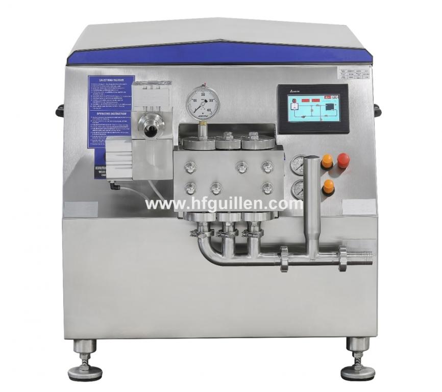 REF-0 HOMOGENEIZADOR DE LECHE 1.000 LITROS/HORA (NUEVO) | Homogeneizador diseñado para causar la lisis o rotura de los glóbulos y partículas de grasa presentes en la leche a fin de obtener un producto final uniforme. Se utiliza comúnmente en la industria láctea en el procesado de leche, nata y yogur. | Homogeneizador de dos etapas. | Capacidad: 1.000 l/h. | Viscosidad: 200 cP. Tamaño de partículas máximo 500 micras. | Temperatura de trabajo: <90°C. | Presión máx. de trabajo: 250 bar. | Presión máxima de alimentación de producto: 2 bar. | 750 golpes/hora. | Motor: 11 kW; 900 rpm; 60 Hz; 380 V. | Suministro eléctrico: 13 CV; 380 V; 50 Hz. | Circuitos auxiliares: 220V DC. | 3 pistones. | Presión de aire comprimido: máx. 5 bar. | Consumo de agua: 80 l/h. | Presión de agua: 2 bar. | Dimensiones totales: ancho 1.100 mm, largo 1.300 mm, alto 1.480 mm. | Peso: 560 kg. | Espesor acero inoxidable: 1,5 mm. | Válvula de descarga DN40. | Patas ajustables en altura (5-16 cm). | REF-0 HOMOGENEIZADOR DE LECHE 1.000 LITROS/HORA (NUEVO) | Volver al listado | Imprimir | Enviar