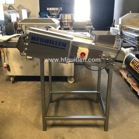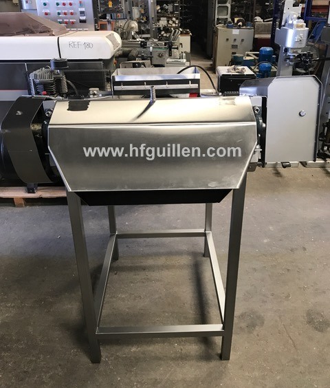 REF-0 RODAJADORA DE ACEITUNAS 450mm (NUEVA) | Rodajadora de aceitunas | Capacidad: 1.500 kg/hora aprox. | 220-380 V | Motor 1 CV | Peso: 250 kg aprox. | Ancho de corte: 450 mm. Largo cinta: 900 mm. | 15 raíles de corte. 75 cuchillas en total. | Dimensiones totales: ancho: 1.000 mm, largo: 1.350 mm, alto: 1.400 mm. | Máquina nueva. Se fabrica por encargo. | REF-0 RODAJADORA DE ACEITUNAS 450mm (NUEVA) | Volver al listado | Imprimir | Enviar