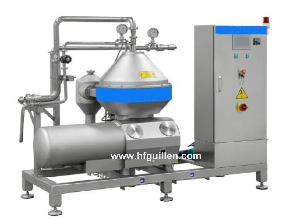 REF-0 SEPARADOR DESNATADORA DE LECHE 10.000 LITROS/HORA (NUEVO) | Máquina desnatadora diseñada para separar la nata de la leche y el suero lácteo. | Bombo rotativo con autolimpieza fabricado en acero inox DIN 1.4462 Duplex. | Funcionamiento del bombo mediante entrada de agua. | Panel de control para la regulación del bombo y descarga de impurezas. | Controlador lógico programable (PLC) marca SIEMENS. | Panel de control táctil a color de 6’’ marca SIEMENS. | Motor de 15 kW marca SIEMENS. | Hidróforo (bomba de agua) automático de acero inox de 0,75 kW. | Cuadro eléctrico de acero inox con aislamiento. | Plataforma de acero inox para la colocación de la máquina, el cuadro eléctrico y el hidróforo. | Capacidad: 7.500-10.000 l/h. | Velocidad de rotación: 7.250 rpm. | Volumen de drenaje del bombo: 12 litros. | Rango de temperatura: 25-95 °C. | Temperatura de trabajo recomendada: 45-55 °C. | Presión de entrada: 1,5-2 bar. | Presión de salida de la nata: 1-2 bar. | Presión de salida de la leche: 1-2 bar. | Potencia del motor: 15 kW. | Potencia de la bomba de agua: 0,75 kW. | Dimensiones del cuadro eléctrico: 650x400x1.200 mm. | Volumen total: 6,5 m³. | Peso total: 1.150 kg. | REF-0 SEPARADOR DESNATADORA DE LECHE 10.000 LITROS/HORA (NUEVO) | Volver al listado | Imprimir | Enviar