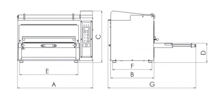 REF-0 TERMOSELLADORA SEMIAUTOMÁTICA CON BARRIDO DE GAS Y CORTE PERIMETRAL 320×260mm (NUEVA) | • Equipada con entrada de barrido de gas. | • Construida en acero inoxidable AISI 304. | • Moldes en aluminio anodizado. | • Sistema de soldadura automática. | • Alimentación del film automática. | • Señal acústica y luminosa de final de ciclo. | • Corta el film perimetralmente, según la forma de la barqueta. | • Panel digital con regulador de temperatura de sellado (0°C-230°C). | • Modelo compacto y robusto. | • Fácil cambio de molde. | • Fácil y rápido calentamiento de la máquina. | • Permite trabajar con diferentes tipos de materiales de bandejas como PP, PET, aluminio, etc. | • Trabaja con aire comprimido. | • Datos eléctricos: 220V/monofásica/50Hz. | • Superficie máxima de sellado: 320×260mm. | • Ancho bobina de film: 430mm. | • Potencia: 1.500W. | • Peso neto/bruto (kg): 65/75. | • Moldes estándar: | – 1/2 GN (320×260 mm) – 1 cavidad | – 1/4 GN (160×260mm) – 2 cavidades | – 1/8 GN (168×130mm) – 4 cavidades | Se puede fabricar cualquier tipo y forma de molde acorde con las bandejas del cliente. | • Opcional: Compresor silencioso de 6 litros. | • Dimensiones (en milímetros): | A | B | C | D | E | F | G | 671 | 385 | 480 | 375 | 490 | 325 | 770 | Vid. última imagen. | REF-0 TERMOSELLADORA SEMIAUTOMÁTICA CON BARRIDO DE GAS Y CORTE PERIMETRAL 320×260mm (NUEVA) | Volver al listado | Imprimir | Enviar
