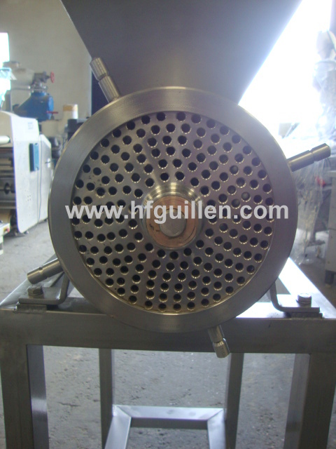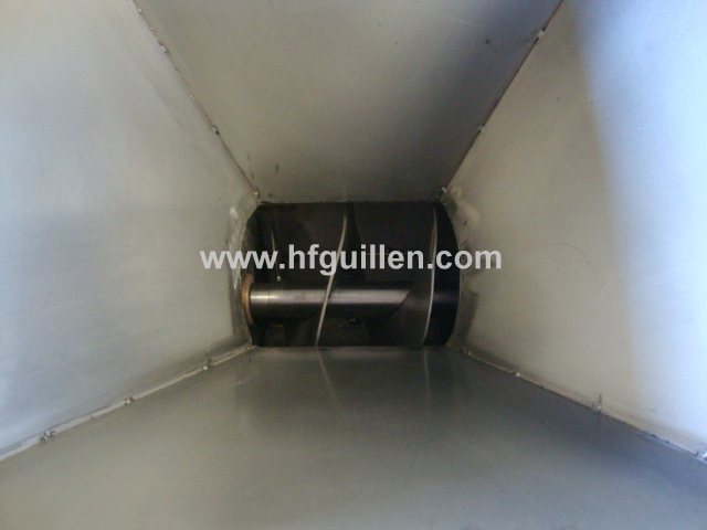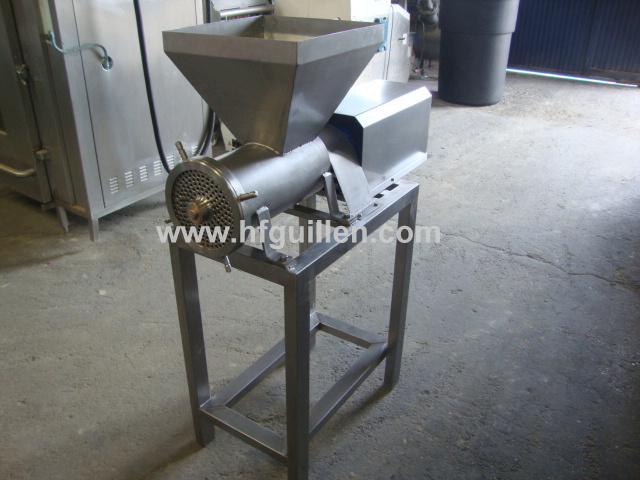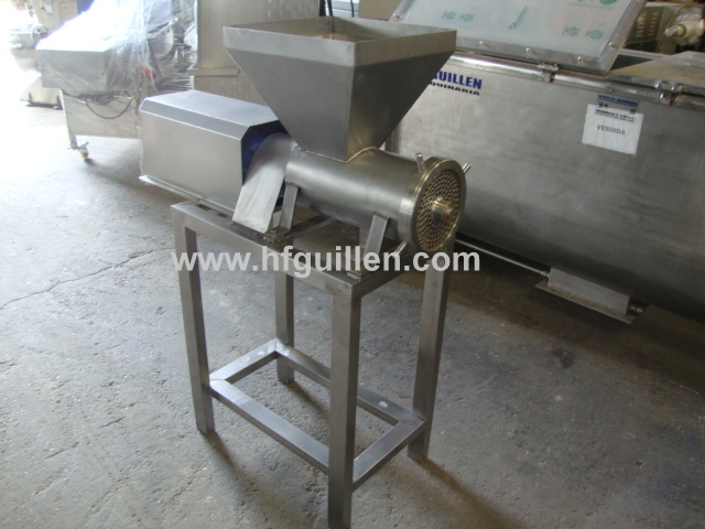 REF-0 TRITURADOR DE TOMATES (NUEVO) | Para moler tomate así como otras aplicaciones. | El cuerpo del triturador lleva un sinfín de arrastre del producto, una cuchilla para el pre-corte y un tamiz de diámetro 200 mm con agujeros de salida de diámetro 8 mm. | Se fabrica nuevo. El diámetro de los agujeros del tamiz los puede elegir el cliente en función de sus necesidades. | Incorpora una tolva de carga de 40 litros aprox. | Fabricado en acero inox. | Producción: 2.000 kg/h | Motor reductor variador de 1 cv; 380 v, trifásico | Dimensiones: largo-1.060 mm, ancho-445 mm, alto-1.380 mm | Volver al listado | Imprimir | Enviar