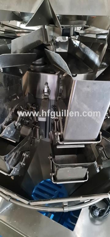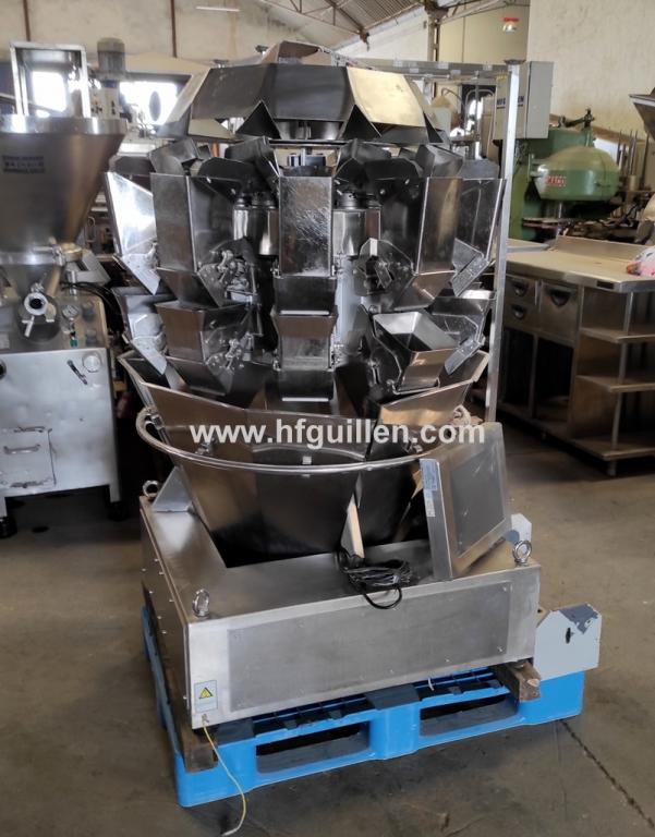 Tienda | BÁSCULAS Y EQUIPOS DE PESAJE | (REF-2497) – PESADORA MULTICABEZAL DISMACK DE 10 CABEZALES | Ampliar imagen | Ampliar imagen | Ampliar imagen | Ampliar imagen | REF-2497 | PESADORA MULTICABEZAL DISMACK DE 10 CABEZALES | Disponibilidad: | En stock | Código: REF-2497 | REF-2497 PESADORA MULTICABEZAL DISMACK DE 10 CABEZALES | Pesadora asociativa multicabezal de 10 cabezales. Reparte el producto entre varias pesadoras y realiza combinaciones de peso hasta hallar la más cercana al objetivo deseado. | Fabricante: DISMACK. | Especialmente diseñada para el peso de productos granulares sólidos o semisólidos. También, puede utilizarse para pesar productos envueltos en envases unitarios (caramelos, magdalenas, etc.), así como productos unitarios (patatas, tomates cherry, etc.). | Tensión: 220 V AC, 50/60 Hz, 9 A. | Potencia: 1,5 kW. | Capacidad de peso: 10 – 65.000 g. | Volumen: 1.300 ml. | Velocidad: 70 descargas/min. | N.º total de combinaciones: 1.000. | Dimensiones totales: ancho 1.000 mm, largo 1.100 mm, alto 1.600 mm. | Peso aprox.: 300 kg | Seguir comprando | Imprimir | Enviar | Enviar mensaje