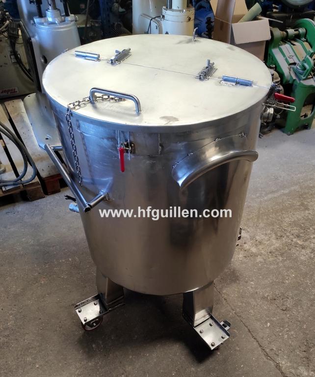 Tienda | DEPÓSITOS, TANQUES | (REF-2511) – DEPÓSITO EN ACERO INOX CON TAPADERA Y RUEDAS | Ampliar imagen | Ampliar imagen | Ampliar imagen | Ampliar imagen | REF-2511 | DEPÓSITO EN ACERO INOX CON TAPADERA Y RUEDAS | Disponibilidad: | En stock | Código: REF-2511 | REF-2511 DEPÓSITO EN ACERO INOX CON TAPADERA Y RUEDAS | Dimensiones depósito: ø 640 mm, altura 710 mm | Dimensiones totales: largo 900 mm, ancho 950 mm, alto 1.150 mm | Capacidad: aprox. 200 litros | Seguir comprando | Imprimir | Enviar | Enviar mensaje
