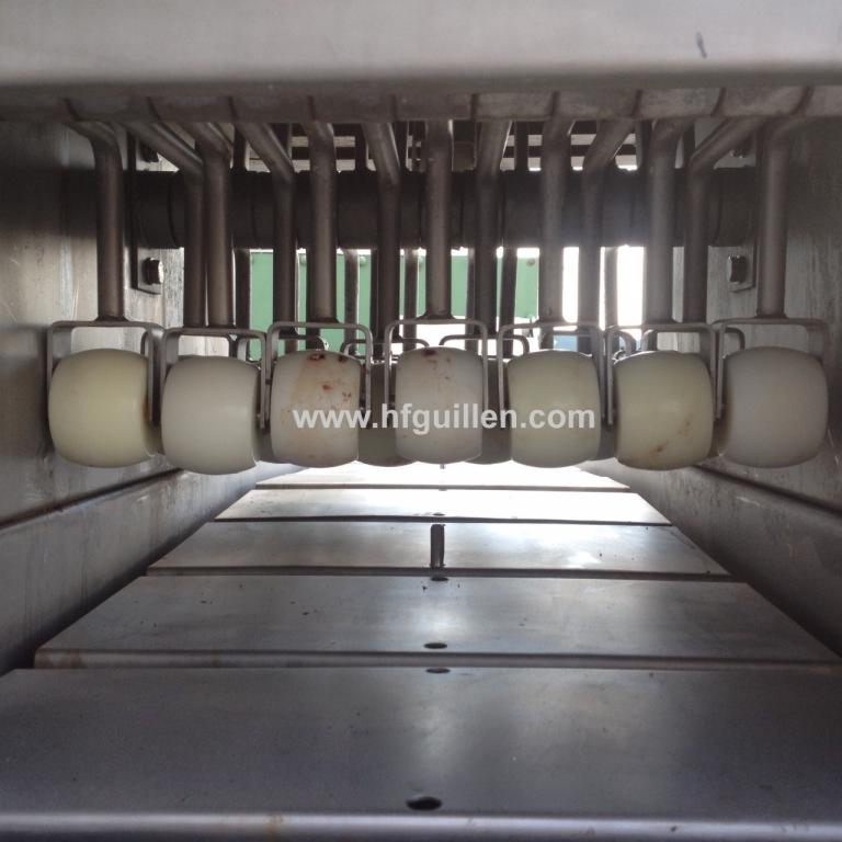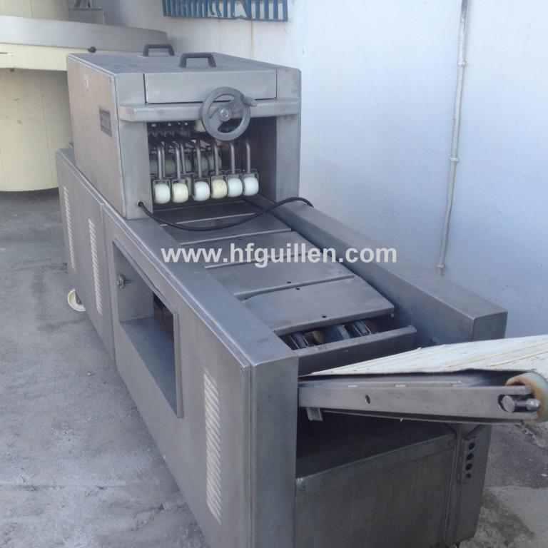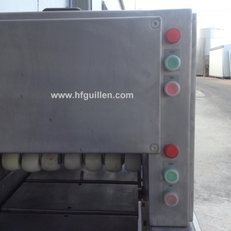 Tienda | VARIOS | (REF-386) – SANGRADORA PARA JAMONES | Ampliar imagen | Ampliar imagen | Ampliar imagen | Ampliar imagen | SANGRADORA PARA JAMONES | Disponibilidad: | En stock | Código: REF-386 | REF-386 SANGRADORA PARA JAMONES | Máquina concebida para quitar la sangre a los jamones o paletas en fresco antes de salar. | Fabricada completamente en acero inox. | Cinta de entrada de jamones en acero inox, con ganchos para arrastrar el jamón y evitar aprisionamientos. Dimensiones cinta entrada: 440 x 2.100mm. | Ruedas para fácil desplazamiento. | 4 líneas de sangradores de altura regulable para diferentes tipos de jamón y paletas. | Cinta de salida con banda de PVC. Ancho 350mm, largo 800mm. Altura de la cinta regulable en varias posiciones. | Dimensiones totales: largo 2.600 mm (3.200mm con la cinta de salida), ancho 700mm, alto 1.300mm. | Seguir comprando | Imprimir | Enviar | Enviar mensaje