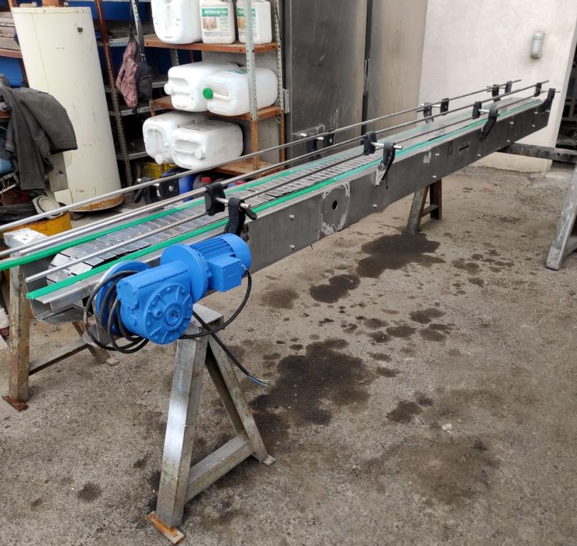 Tienda | CINTAS TRANSPORTADORAS | (REF-1889) – TRANSPORTADOR DE CHARNELA EN ACERO INOX 3KG | Ampliar imagen | Ampliar imagen | Ampliar imagen | Ampliar imagen | TRANSPORTADOR DE CHARNELA EN ACERO INOX 3KG | Disponibilidad: | En stock | Código: REF-1889 | REF-1889 TRANSPORTADOR DE CHARNELA EN ACERO INOX 3KG | Transportador de charnela para botes de 3 kg | Chasis y cadena en acero inoxidable | Dimensiones totales: largo 4.100 mm, ancho 700 mm, alto 340 mm | Dimensiones cadena: largo 4.000, ancho 150 mm | Potencia: 0,45 kW | Seguir comprando | Imprimir | Enviar | Enviar mensaje