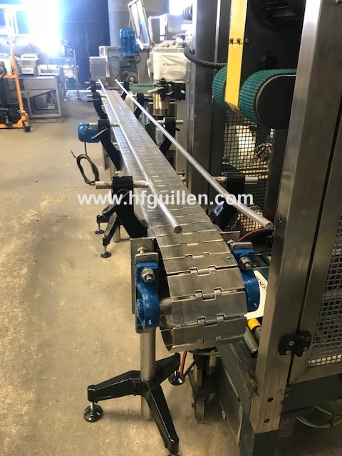 Tienda | TRANSPORTADORES DE CHARNELA | (REF-337) – TRANSPORTADOR DE CHARNELA EN ACERO INOX | Ampliar imagen | Ampliar imagen | Ampliar imagen | TRANSPORTADOR DE CHARNELA EN ACERO INOX | Disponibilidad: | En stock | Código: REF-337 | REF-337 TRANSPORTADOR DE CHARNELA EN ACERO INOX | Transportador en acero inoxidable. | 1 motor reductor de 0,37kW. | Dimensiones: 120mm ancho cadena, 180mm ancho total; 2.700mm largo, 1.120mm alto. | Seguir comprando | Imprimir | Enviar | Enviar mensaje