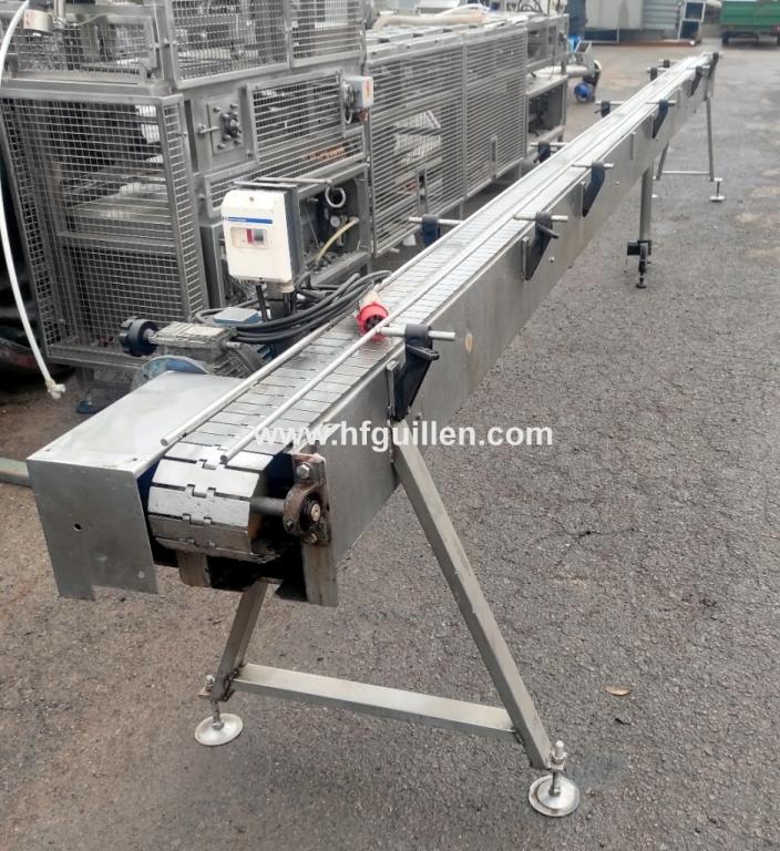 Tienda | TRANSPORTADORES DE CHARNELA | (REF-2619) – TRANSPORTADOR DE CHARNELA INOX 710x15cm | Ampliar imagen | Ampliar imagen | Ampliar imagen | Ampliar imagen | TRANSPORTADOR DE CHARNELA | TRANSPORTADOR DE CHARNELA INOX 710x15cm | Disponibilidad: | En stock | Código: REF-2619 | REF-2619 TRANSPORTADOR DE CHARNELA INOX 710x15cm | Transportador de cadena de charnela en acero inoxidable | Motor variador de 1 CV | Dimensiones cadena: largo 7.100 mm, ancho 150 mm, altura de trabajo 960 mm | Dimensiones totales: largo 7.100 mm, ancho 600 mm, alto 1.250 mm | Seguir comprando | Imprimir | Enviar | Enviar mensaje