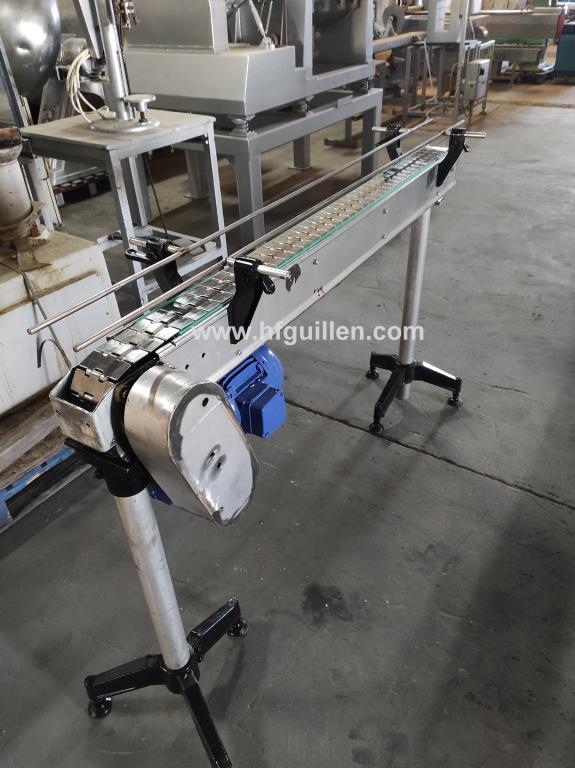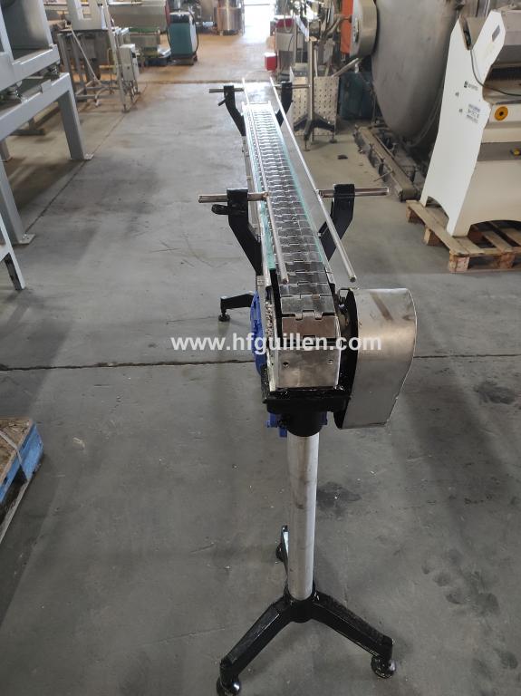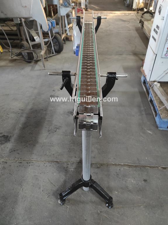 Tienda | TRANSPORTADORES DE CHARNELA | (REF-2198) – TRANSPORTADOR EN ACERO INOXIDABLE | Ampliar imagen | Ampliar imagen | Ampliar imagen | TRANSPORTADOR EN ACERO INOXIDABLE | Disponibilidad: | En stock | Código: REF-2198 | Transportador en acero inoxidable. | Motor 1Cv. | Dimensiones: 83mm (hasta 155mm) ancho cadena, 400mm ancho total, 1.700mm largo, 1.120mm alto total, 1.000mm alto cinta (regulable). | Seguir comprando | Imprimir | Enviar | Enviar mensaje