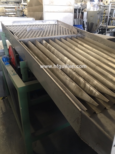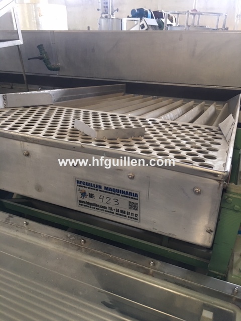 Tienda | VIBRADORES | (REF-423) – VIBRADOR POSICIONADOR DE MELOCOTON | Ampliar imagen | Ampliar imagen | Ampliar imagen | VIBRADOR POSICIONADOR DE MELOCOTON | Disponibilidad: | En stock | Código: REF-423 | REF-423 VIBRADOR POSICIONADOR DE MELOCOTÓN | Posicionador de melocotón boca arriba. | Cuerpo vibrador en acero inox. | Estructura en fundición. | Incorpora en la parte superior unas duchas. | Potencia del motor: 1 kW | Dimensiones del cuerpo del vibrador: largo 1.700 mm, ancho 940 mm, alto 180 mm | Dimensiones totales: largo 1.700 mm, ancho 1.200 mm, alto 1.350 mm | Seguir comprando | Imprimir | Enviar | Enviar mensaje